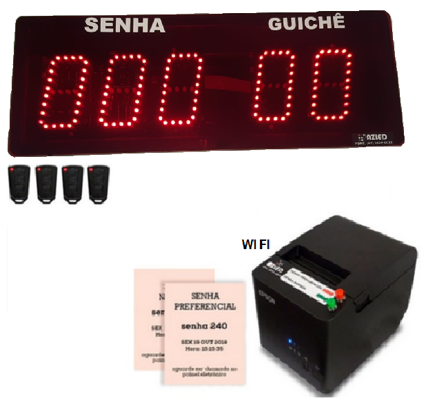 - Painel Eletrônico com 5 Digitos sendo 3 Dígitos para indicação das Senhas e 2 Dígitos para Indicação do Guichê (obs: você pode solicitar a troca do Adesivo indicativo por "CAIXA" "MESA" "SALA"